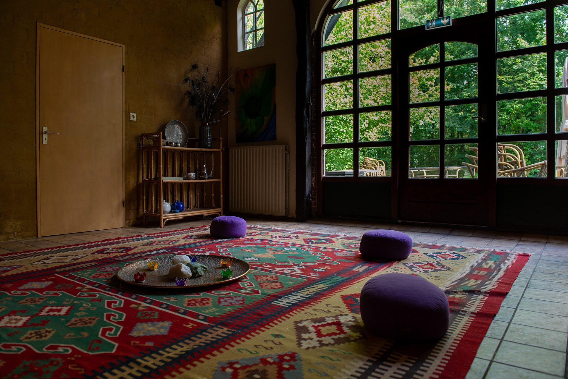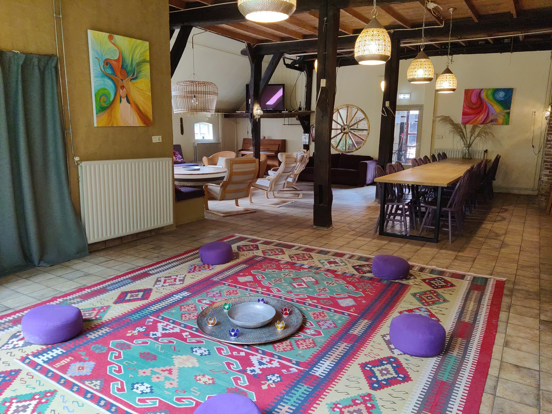 • een workshopruimte op het terrein waarin je samen kunt mediteren of yoga beoefenen